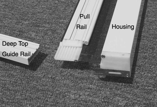 The single Dreamscreens come with the deep top guide rail, which was initially developed for the double doors to add strength and stability. The deep top rail prevents wind from blowing the screen out of the rail in anything but severe conditions. Because the top and bottom rail are not the same depth, the standard Dreamscreen now must be specified as either left-hand or right-hand (see image below). |