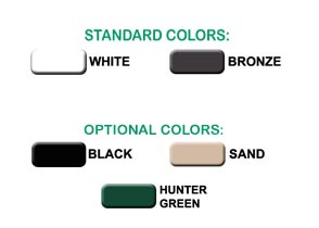 The standard single door is available in two standard colors ( White, Bronze) and three optional colors ( Black , Sand, and Hunter Green) . The colors here may not reproduce accurately on all computers, but are intended to give a close approximation. |